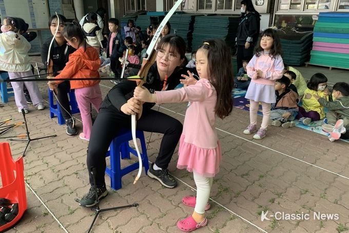 K-Classic News 이호민 기자 | 홍성군청 양궁선수단이 지난 20일 양궁 훈련장에서 지역 유치원생 57명을 대상으로 현장 체험 학습을 진행해 큰 호응을 얻었다.