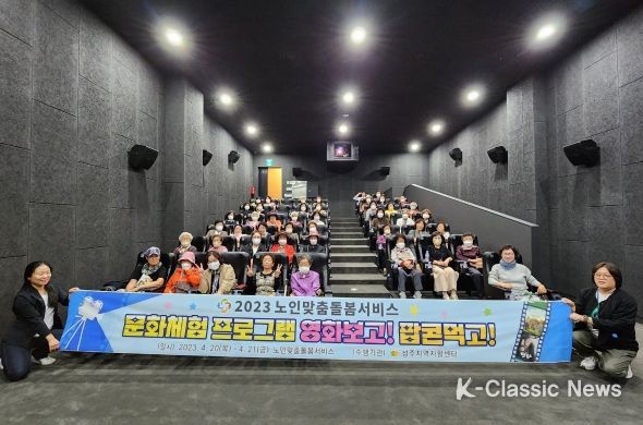 K-Classic News 최지은 기자 | 성주군에서는 노인맞춤돌봄서비스(성주지역자활센터) 독거노인 200명을 대상으로 2023. 4. 20. ~ 4. 21. 양일간 별고을시네마에서 단체 영화 관람을 실시했다.