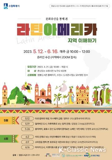 K-Classic News 최지은 기자 | 수원시 영통도서관이 한국외국어대학교와 협력해 운영하는 프로그램 ‘문화유산을 통해 본 라틴아메리카 지역 이해하기’ 참가자를 모집한다.