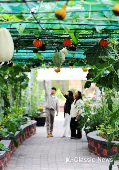 K-Classic News 이호민 기자 | 제25회 함평나비대축제가 개최되는 함평엑스포공원 친환경농업관에 오색빛깔 호박이 주렁주렁 매달려 있다.