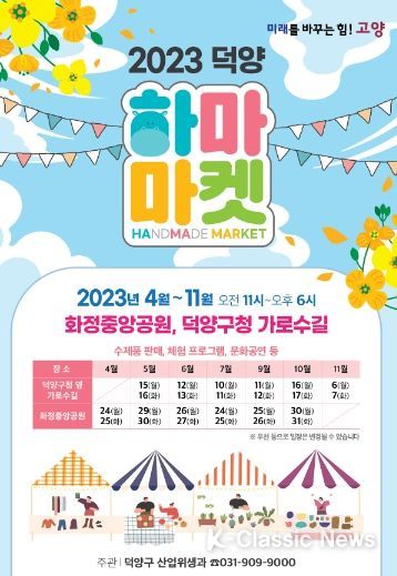K-Classic News 최지은 기자 | 고양특례시 덕양구는 4월 24일부터 11월 7일까지, 덕양구 화정동에 위치한 화정중앙공원 및 덕양구청 옆 가로수길에서 ‘2023 하마마켓’을 개최한다.