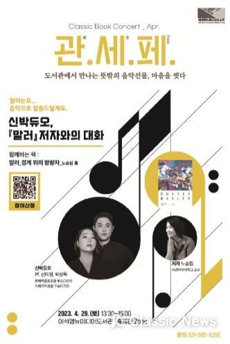 K-Classic News 최지은 기자 | 남양주시 이석영뉴미디어도서관은 4월부터 오는 10월까지 매월 1회 클래식 북 콘서트 『관.세(洗).페』를 개최한다.