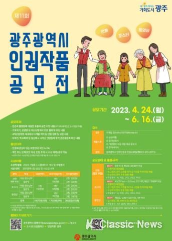 K-Classic News 최지은 기자 | 광주광역시는 인권의식 함양과 인권존중 문화 확산을 위해 ‘제11회 인권작품 공모전’을 개최한다.