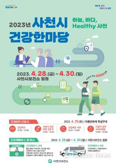 K-Classic News 이호민 기자 | 사천시는 오는 4월 28일부터 30일까지 3일간 사천시보건소 일원에서 ‘2023년 사천시 건강한마당’ 축제를 개최한다고 25일 밝혔다.