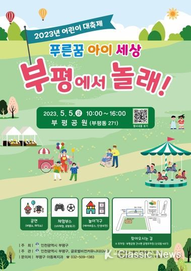 K-Classic News 이호민 기자 | 부평구가 오는 5월 5일 부평공원 소나무 광장 일대에서 제101회 어린이날을 맞아 2023년 어린이 대축제, 푸른꿈 아이 세상 ‘부평에서 놀래!’를 진행한다.