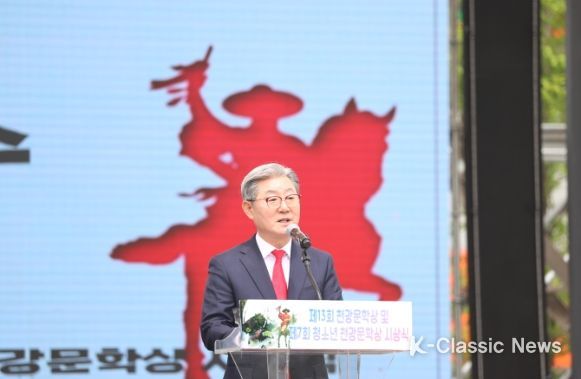 K-Classic News 최지은 기자 | 천강 곽재우 장군의 숭고한 뜻을 기리고 문학사상을 이어 우수한 문인을 배출하기 위해 제정된 ‘제13회 천강문학상 및 제7회 의령군 청소년 천강문학상 시상식’이 제48회 의령홍의장군축제 마지막 날인 지난 4월 23일 서동생활공원 내 특설무대에서 개최됐다.
