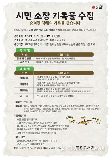 K-Classic News 이호민 기자 | 김해시 장유도서관은 오는 5월부터 시민이 소장하고 있는 김해 관련 기록물을 수집한다고 밝혔다.