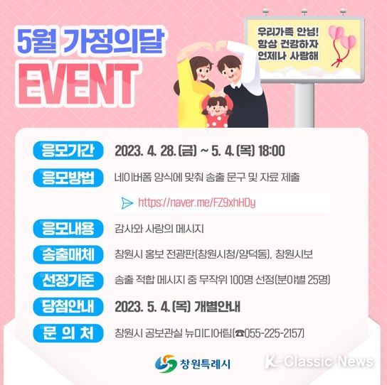 K-Classic News 이호민 기자 | 5월 가정의 달을 맞이해 창원특례시가 이색적인 이벤트를 진행한다.