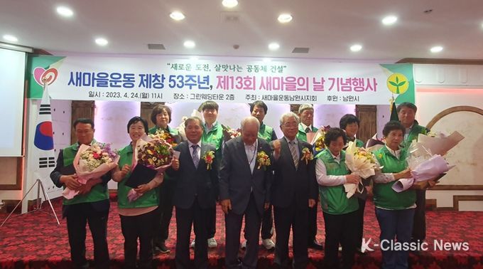 K-Classic News 이호민 기자 | 새마을남원시지회는 지난 24일 남원 그린웨딩타운에서 제13회 ‘새마을의 날’ 기념 행사를 개최했다.