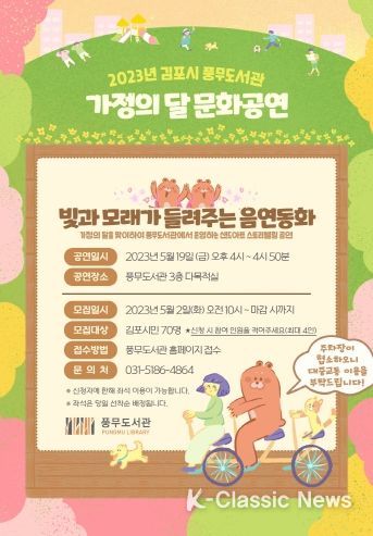 K-Classic News 최지은 기자 | 김포시 풍무도서관이 가정의 달을 맞이하여 문화공연 ‘빛과 모래가 들려주는 음연동화’를 운영한다.