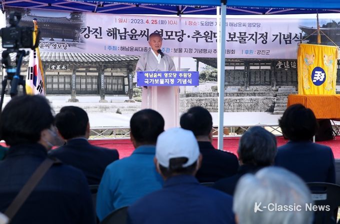 K-Classic News 이호민 기자 | 강진군은 25일, 도암면 계라리에서 ‘강진 영모당 · 추원당’의 국가 문화재 보물 지정에 따른 기념식을 개최했다.