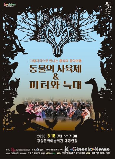 K-Classic News 이호민 기자 | 광양시는 오는 5월 18일 저녁 7시 30분 문화예술회관 대공연장에서 그림자극으로 만나는 환상의 음악여행 '동물의 사육제 & 피터와 늑대' 공연을 개최한다고 밝혔다.