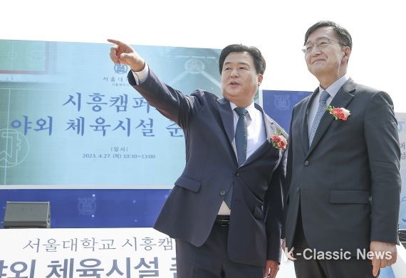 K-Classic News 최지은 기자 | 서울대시흥캠퍼스에 푸른 잔디가 펼쳐졌다. 27일 서울대시흥캠퍼스 야외체육시설 준공행사가 개최됐다. 행사에는 임병택 시흥시장과 유홍림 서울대 총장, 조정식 국회의원, 정몽원 HL그룹 회장 등 관계자 70여 명이 참석했다.