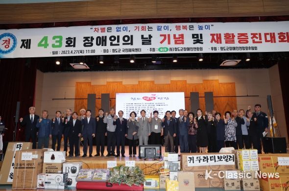 K-Classic News 최지은 기자 | 사)청도군장애인연합회는 지난 27일 청도국민센터 실내체육관에서 김하수 청도군수, 김효태 청도군의회 의장을 비롯한 기관단체장, 장애인단체장과 회원, 자원봉사자 등 600여 명이 참석한 가운데 『제43회 장애인의 날 기념 및 재활증진대회』를 개최했다.