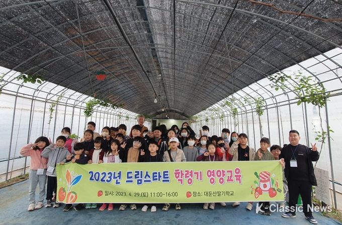 K-Classic News 이호민 기자 | 금산군은 지난 29일 대둔산딸기학교에서 드림스타트 초교 1~6학년 학령기 아동 40여 명이 참여한 가운데 영양교육을 전개했다.