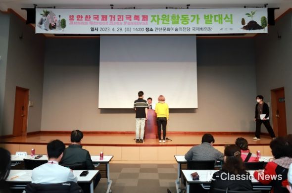 K-Classic News 최지은 기자 | 안산시와 안산문화재단은 지난 29일 안산문화예술의전당 국제회의장에서 안산시자원봉사센터, 안산소방서, 자원활동가 500여 명이 참석한 가운데 '제19회 안산국제거리극축제' 자원활동가 발대식을 가졌다.