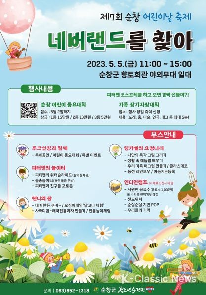 K-Classic News 이호민 기자 | 코로나19로 인해 비대면으로 진행됐던 어린이날 축제가 3년 만에 순창읍에 위치한 향토회관 앞 무대에서 오는 5일 대면으로 진행된다.