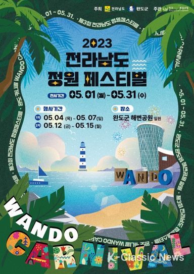 K-Classic News 이호민 기자 | 전라남도는 4일부터 15일까지 완도 해변공원 일원에서 생활 속 정원문화·산업 활성화를 위한 ‘제3회 전라남도 정원 페스티벌’을 개최한다.