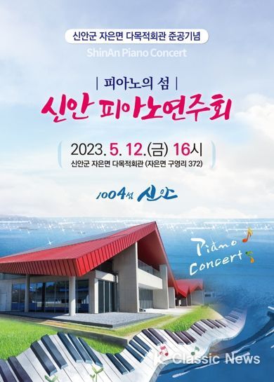 K-Classic News 이호민 기자 | 신안군은 오는 5월 12일 금요일 자은면 다목적회관에서 오후 4시부터 2시간 동안 ‘신안 피아노 연주회’를 개최할 예정이다.