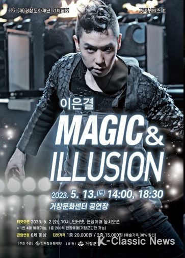 K-Classic News 이호민 기자 | (재)거창문화재단은 오는 13일 토요일 거창문화센터에서 선보이는 이은결의 ‘MAGIC & ILLUSION’ 공연이 현장과 온라인 동시 예매 시작 1분 만에 2회 공연이 ‘전석 매진’ 됐다고 밝혔다.