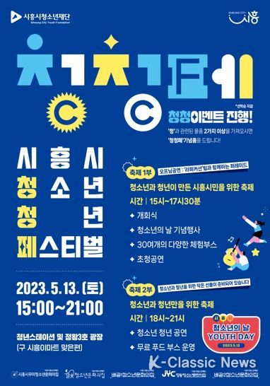 K-Classic News 이호민 기자 | 시흥시가 주최하고, (재)시흥시청소년재단(대표이사 이덕희)이 주관하는 2023 시흥시 청소년청년페스티벌 ‘청.청.페(C.C.F)’ 축제가 13일에 열린다.