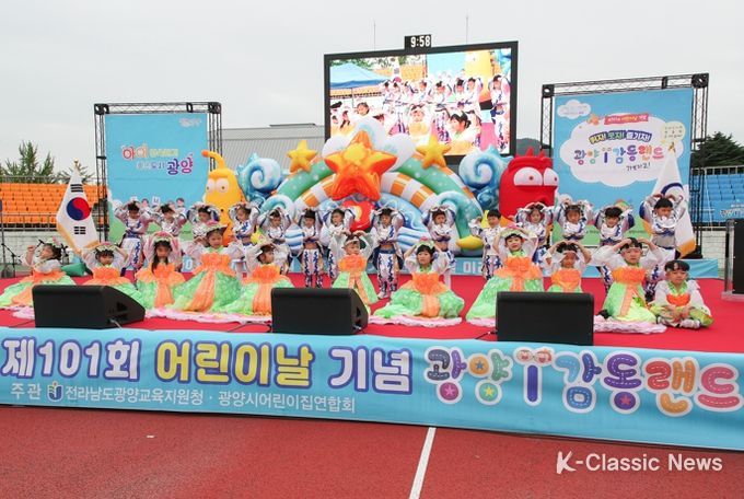 K-Classic News 이호민 기자 | 광양시가 주최하고 전라남도광양교육지원청과 광양시어린이집연합회가 주관하는 제101회 어린이날 기념 ‘광양시 어린이놀이 한마당’ 행사가 궂은 날씨에도 아이들에게 큰 감동을 선사하며 성황리에 마쳤다.