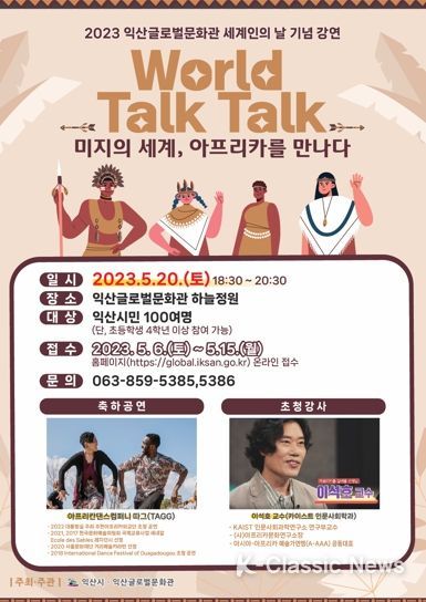 K-Classic News 이호민 기자 | 익산글로벌문화관은‘2023 세계인의 날’을 맞이해 세계시민 강연‘World Talk Talk’을 20일 개최한다.