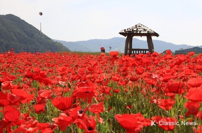 K-Classic News 이호민 기자 | 코스모스·메밀꽃과 더불어 우리나라 대표적인 봄·가을 축제장인 하동군 북천면 직전마을 들판에 꽃양귀비가 이상기후로 인해 일찍 꽃망울을 터트리기 시작해 붉은 자태를 한창 드러내고 있다.