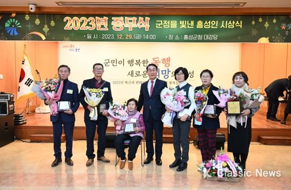 K-Classic News 기자 | 홍성군은 29일 군청 대강당에서 2023년 군정을 빛낸 홍성인 시상식과 한 해를 마무리하는 종무식을 개최했다.