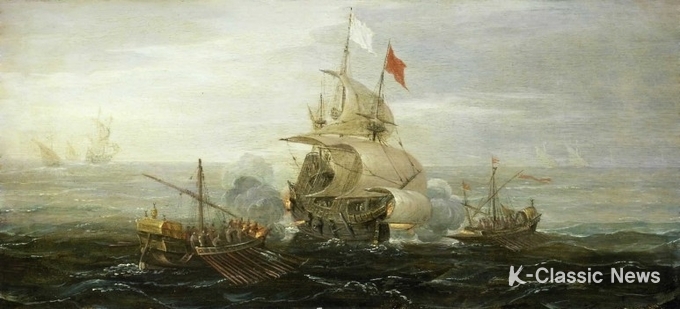 Nave francese attaccata da corsari barbareschi. Dipinto di Aert Anthonisz (1579-1620)