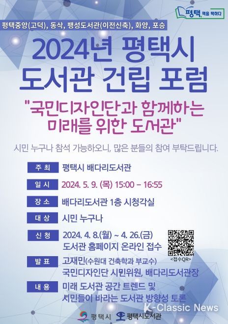 K-Classic News 기자 | 평택시 배다리도서관이 9일에 ‘2024년 평택시 도서관 건립포럼’을 성황리에 개최했다.