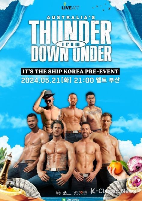 K-Classic News 기자 | 라스베이거스의 대표적인 핫가이쇼 ‘썬더 프롬 다운 언더(Thunder From Down Under)’가 6월 서울 내한 공연에 앞서 오는 21일 부산에서 먼저 ‘썬더 프롬 다운 언더 프리뷰 부산’ 특별 공연을 진행한다.