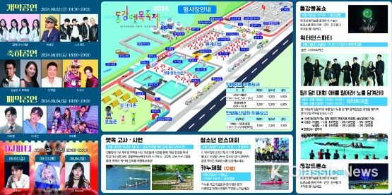 배우 조한선과 함께하는 DJ 파티, 박상민, 코요태, 노브레인, 노라조, 박서진 등 연애인 축하 공연, 워터파크존, 카누 체험, 에어바운스 놀이 시설 등. 아침 10시부터 밤 10시까지 즐거움이 끊이지 않을 예정이다. 도내 청소년 댄스 대회, 밀당 대회(배를 밀어라! 노를 당겨라!), 워터댄스 파티 등 모든 연령대가 함께할 수 있는 프로그램이 준비되어 있다.