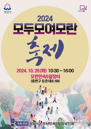 K-Classic News 기자 | 성남시가 오는 29일 오전 10시 30분부터 오후 4시까지 모란민속5일장터(중원구 둔촌대로 68)에서 '2024 모두모여모란' 축제를 개최한다.
