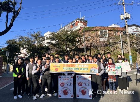 K-Classic News 기자 | 부산 중구청소년상담복지센터는 지난 24일 관내 5개교(덕원중, 남성여고, 동주여고, 디지털고, 혜광고등학교)에서 학생 임원, 솔리언또래상담자 및 선생님들과 함께 전교생에게 사과를 전달하며 사과데이(10월 24일) 행사를 진행했다.