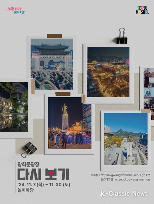 K-Classic News 기자 | 2022년 광화문광장 재개장 이후 광화문광장의 다양한 모습을 자유롭게 관람할 수 있는 전시가 광화문광장에서 열린다. 서울시는 재개장 이후 광화문광장의 모습이 담긴 사진과 영상을 11월 7일에서 11월 30일까지 광화문광장 놀이마당에 전시한다고 밝혔다.