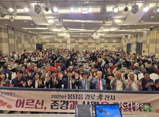 K-Classic News 기자 | 화성특례시 봉담읍은 지난 22일 푸르미르호텔에서 어르신 및 주민 500여 명이 함께한 가운데 ‘2025년 봉담읍 경로효잔치’를 성황리에 개최했다.