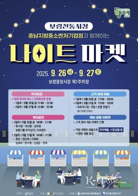 K-Classic News 기자 | 보령시는 오는 26일부터 27일까지 중앙시장 제1주차장에서 ‘보령중앙시장 나이트마켓’을 운영한다고 밝혔다.