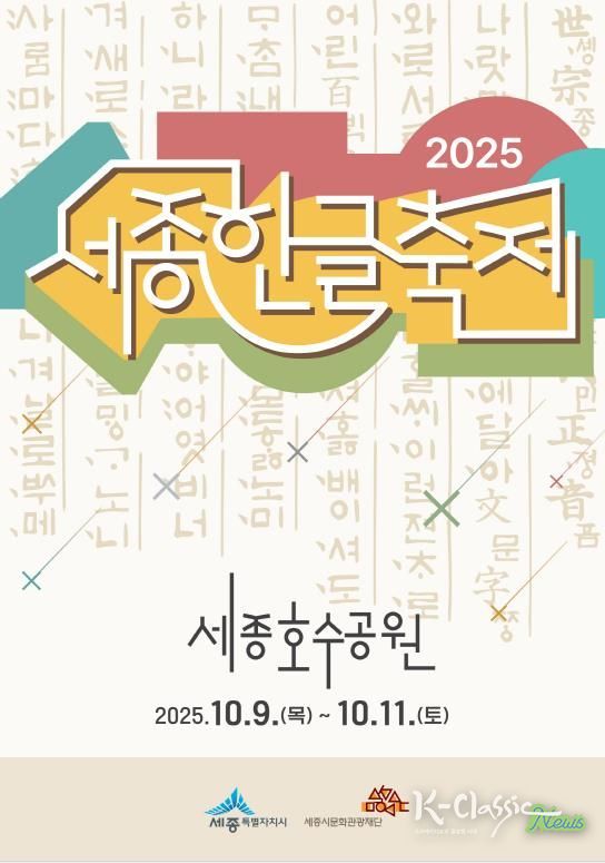 K-Classic News 기자 | 세종특별자치시가 오는 9일 한글날을 시작으로 11일까지 3일간 세종호수공원 일원에서 ‘2025 세종한글축제’를 개최한다고 밝혔다.