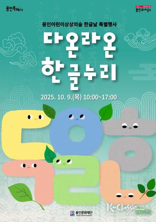 K-Classic News 기자 | 용인문화재단은 오는 10월 9일, 제579돌 한글날을 기념해 어린이를 위한 특별행사 ‘다온라온 한글누리’를 용인어린이상상의숲에서 개최한고 밝혔다.