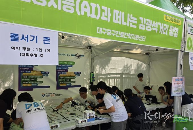 K-Classic News 기자 | 대구 중구진로진학지원센터(센터장 김남탁)는 대봉1동 창의융합 학생동아리와 함께 지난달 27일부터 이틀간 삼성창조캠퍼스에서 열린 ‘2025 대구메이커페스타’에 참가해 김광석거리 홍보 프로젝트 ‘DB1 메타크래프트 체험부스’를 운영했다.
