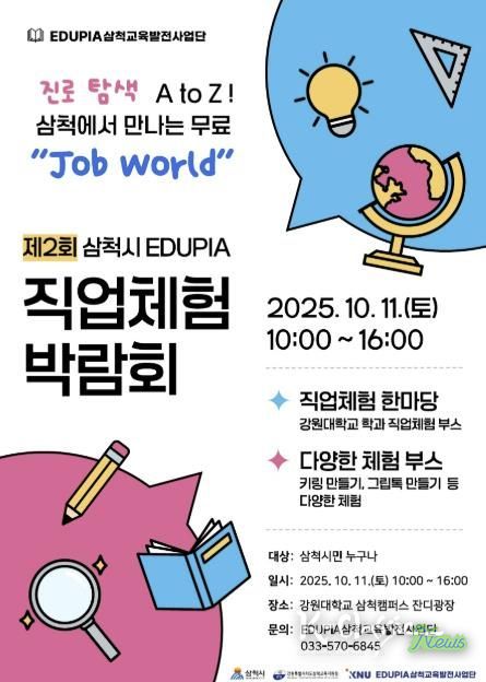 K-Classic News 기자 | 삼척시와 EDUPIA삼척교육발전사업단은 오는 10월 11일 오전 10시 강원대학교 삼척캠퍼스 잔디광장에서 ‘제2회 삼척시 EDUPIA 직업체험 박람회’를 개최한다고 밝혔다.