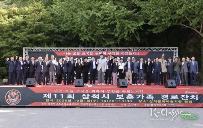 K-Classic News 기자 | 삼척시는 10월 1일, 삼척시 문화예술회관 광장에서'제11회 삼척시 보훈가족 경로잔치'를 개최해 보훈가족 어르신들의 헌신과 노고에 감사의 뜻을 전하고, 화합과 소통의 자리를 마련했다.