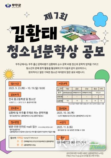 K-Classic News 기자 | 무주군이 전국의 중·고등학생 및 청소년(2007.1.1.~2012.12.31. 출생자에 한함)을 대상으로 제7회 김환태 청소년문학상에 도전하는 작품 공모에 나섰다.