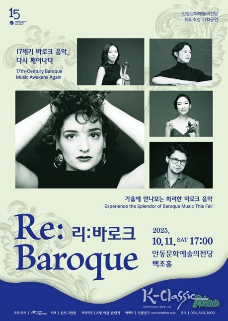 K-Classic News 기자 | 안동문화예술의전당은 다양한 장르의 특별기획공연으로 수준 높은 문화예술을 접할 수 있는 기회를 확대하고 있다. 10월 11일 금요일 오후 5시 안동문화예술의전당 백조홀에서는 'Re:baroque(리:바로크) 다시 깨어나는 바로크 음악' 무대가 열린다.