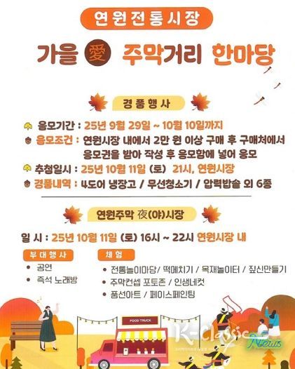 K-Classic News 기자 | 충주시가 지역 상권의 활력을 높이기 위해 마련한 ‘가을애(愛) 주막거리 한마당’이 오는 11일 연원시장에서 열린다.
