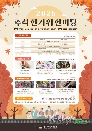 K-Classic News 기자 | 광주역사민속박물관은 추석 명절을 맞아 오는 6일부터 7일까지 이틀간 ‘2025년 추석 한가위 한마당’을 개최한다.