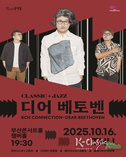 K-Classic News 기자 | 클래식부산은 오는 10월 16일 저녁 7시 30분 챔버홀에서 ▲피아니스트 고희안 ▲드럼 한웅원 ▲베이스 정용도와 클래식부산 오케스트라 수석들이 주축이 된 '부산콘서트홀 커넥션-디어 베토벤'의 공연을 개최한다고 밝혔다.