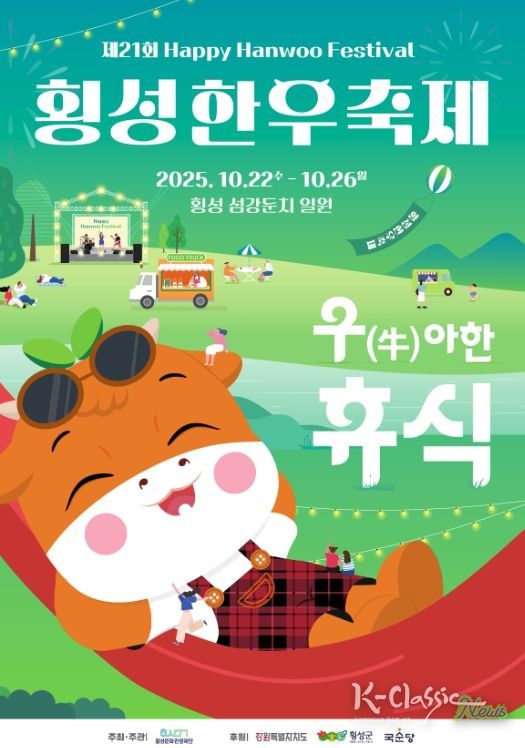 K-Classic News 기자 | 횡성문화관광재단이 대한민국 대표 한우 축제인 ‘제21회 횡성한우축제’를 오는 10월 22일부터 26일까지 닷새간 횡성군 섬강둔치 일원에서 개최한다.