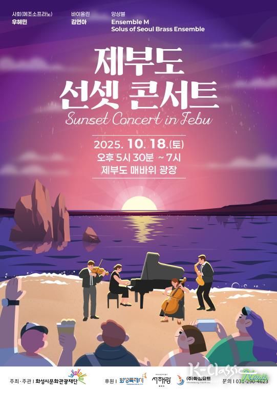 K-Classic News 기자 | 화성시문화관광재단은 아름다운 서해의 석양을 배경으로 클래식 공연 ‘제부도 선셋 콘서트(Sunset Concert in Jebu)’를 오는 10월 18일 5시 30분 제부도 매바위 광장에서 개최한다. 이번 공연은 제부도를 단순 방문지를 넘어 머무는 체류형 관광지로 전환하고, 서해안 관광 활성화의 기반을 마련하는 데 목적이 있다.